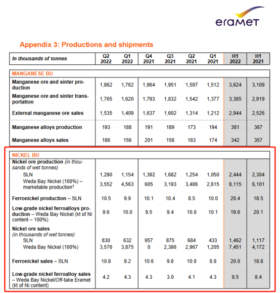 न्यू कैलेडोनिया में, गंभीर मौसम और परिचालन संबंधी कठिनाइयों के बावजूद, एसएलएन खनन उत्पादन 2.4 मिलियन गीला टन था, जो साल-दर-साल 6% ऊपर था।फेरोनिकेल का उत्पादन 10% बढ़कर 20,400 टन हो गया, जबकि फेरोनिकेल की बिक्री 6% बढ़कर 20,000 टन हो गई।निम्न-श्रेणी के निकल अयस्क का निर्यात 31% बढ़कर 1.5 मिलियन गीला टन हो गया।हालांकि, चल रही बिजली आपूर्ति की कठिनाइयों से डोनियाम्बो संयंत्र गंभीर रूप से बाधित हो गया है।